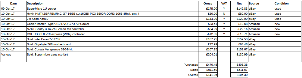 As you can see, the build ended up cash positive. However, this profit has to be offset against the costs incurred on the NAS server build.