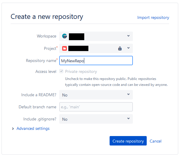 This is my whole reason for making this post, because if you allow Bitbucket to create any files then it isn’t going to work when you do your first push.