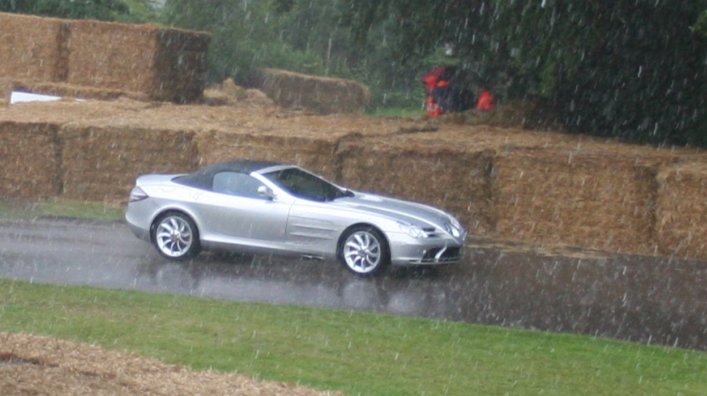 - 2007, convertible, Festival of Speed, gfos, Goodwood, Goodwood Festival of Speed, mclaren, Mercedes, Mercedes-Benz, rain, roof up, SLR, wet