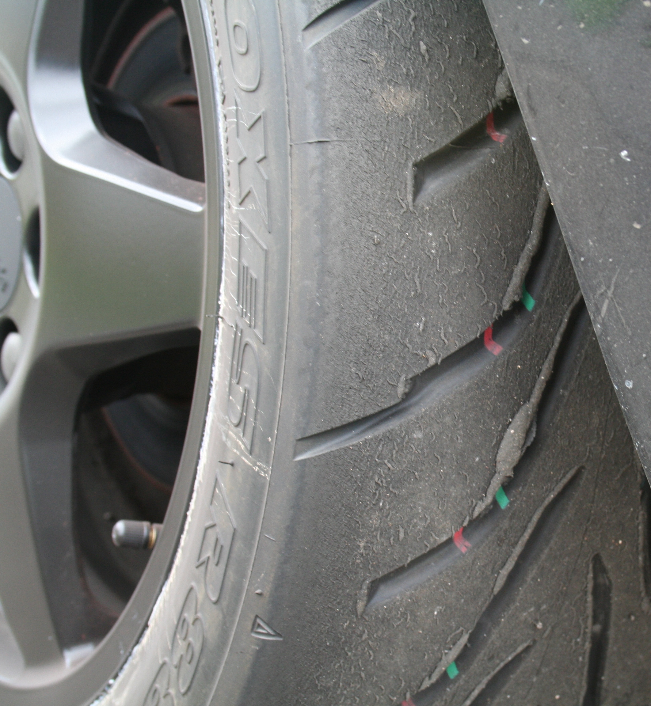 Tyre wear and graining during a track day at Castle Combe.