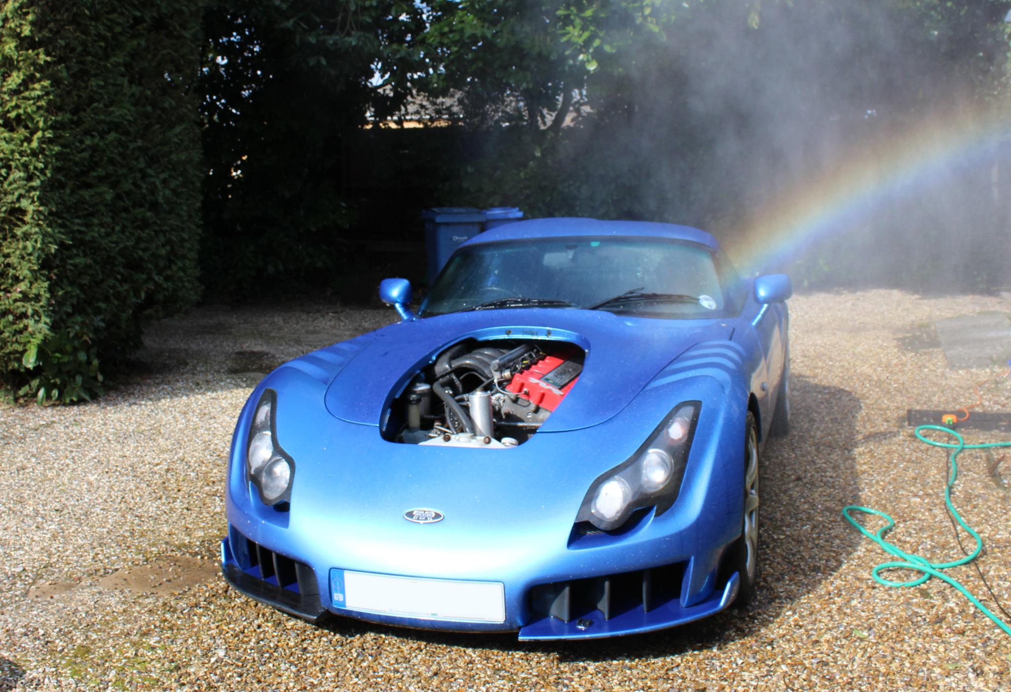 Creating an artificial rainbow with a pressure washer whilst washing my TVR Sagaris